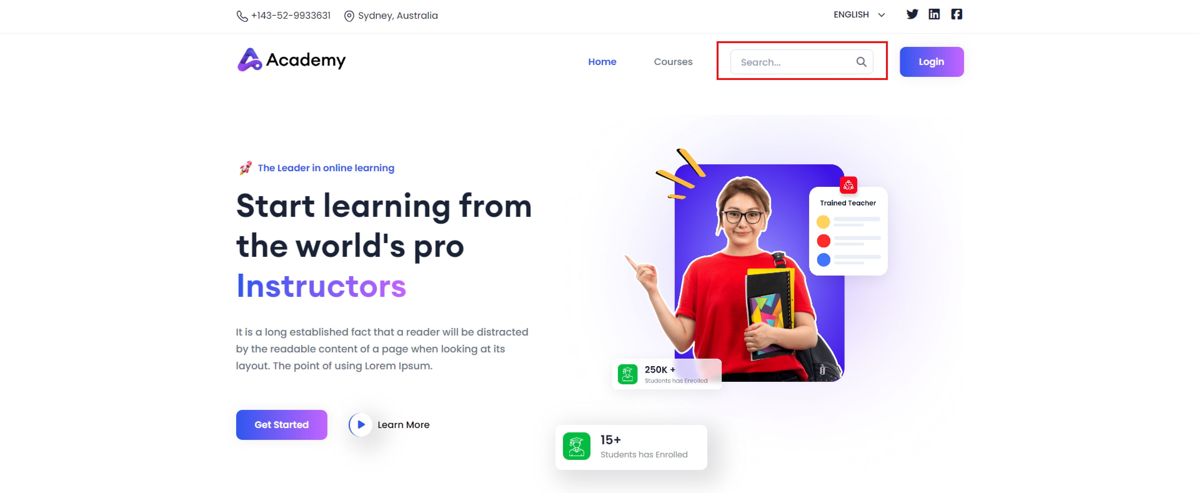 On top of the page, users can easily search for their preferred courses in the course Search bar.