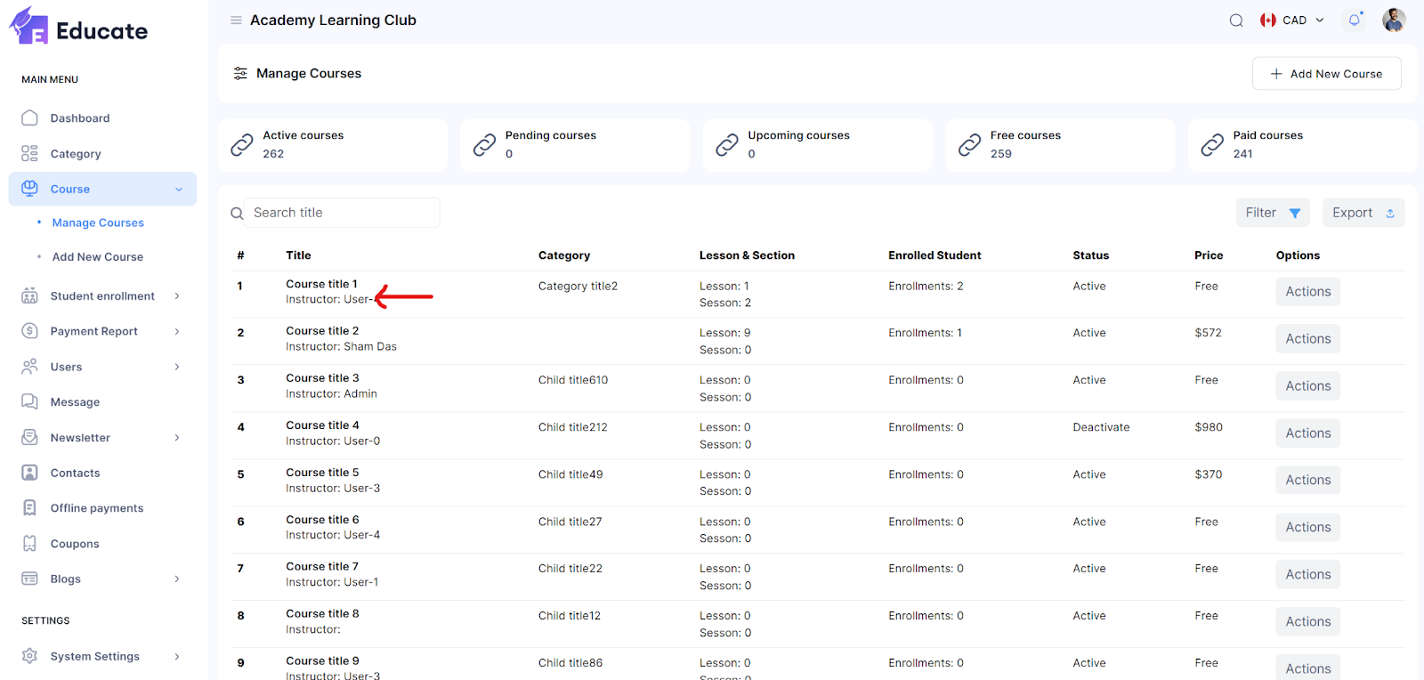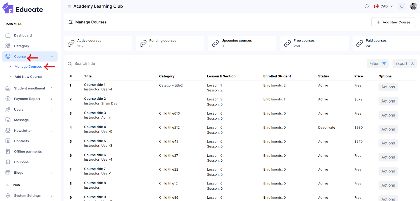 As an admin/instructor, you can create as many lessons as you would like to a single course. Follow the steps below to create lessons: