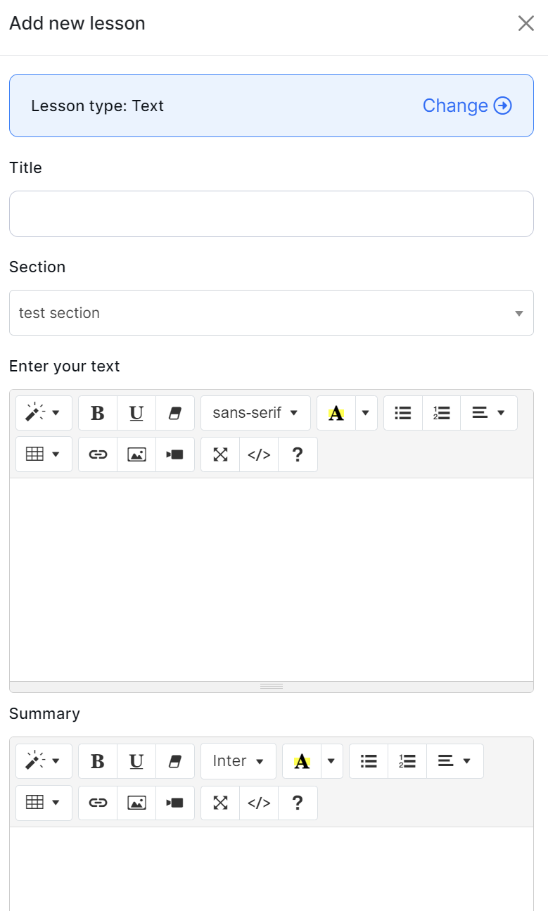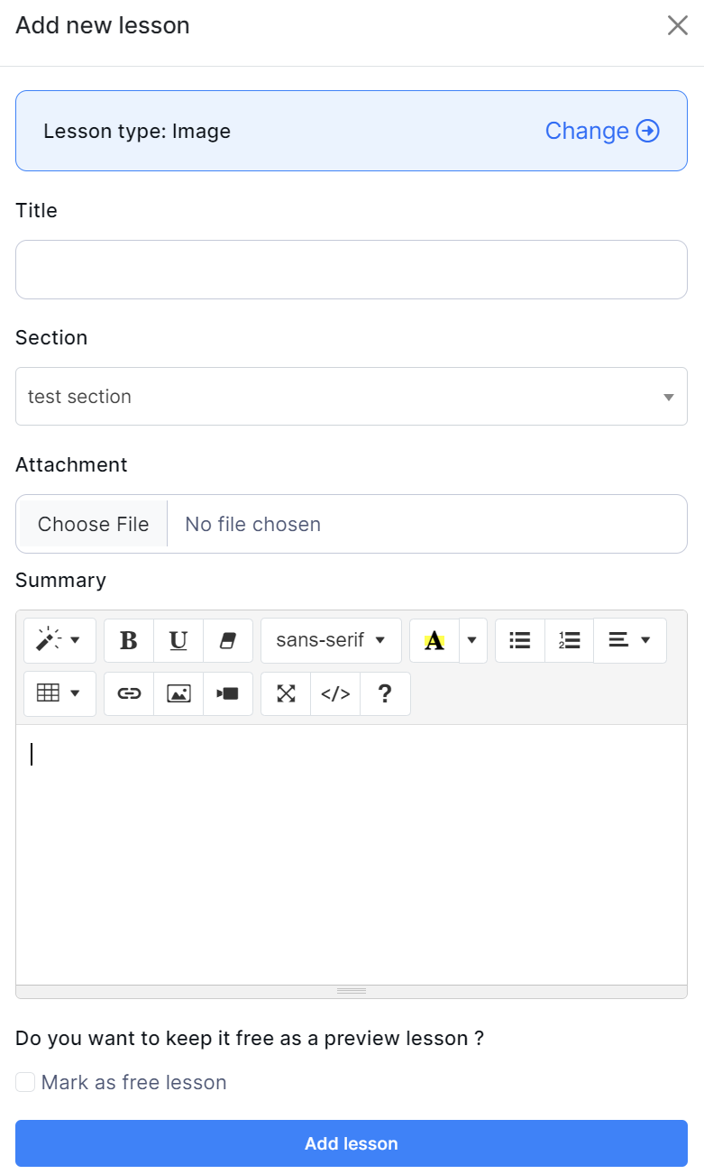 Select the "Add lesson" button to add a new Youtube video lesson.