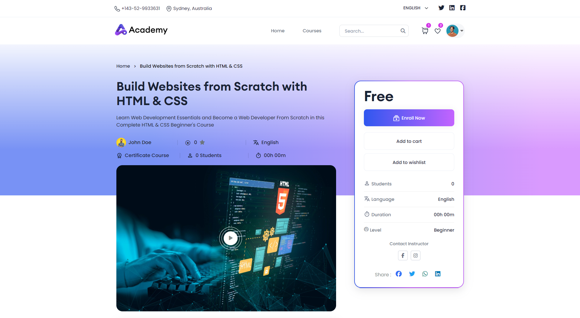 If you click on the Buy Course button, it will be added to the Cart.