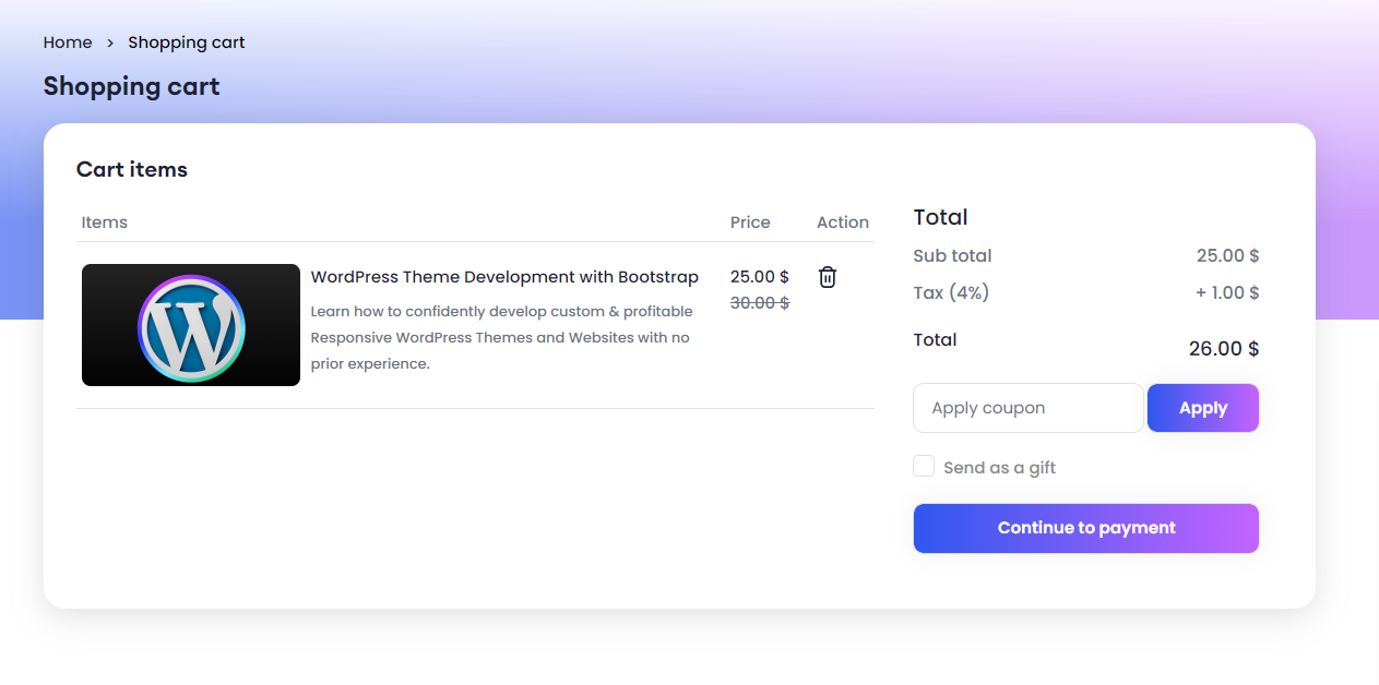 After you click on Cart, you can manage all the courses that you want to buy, add or remove more if you would like.