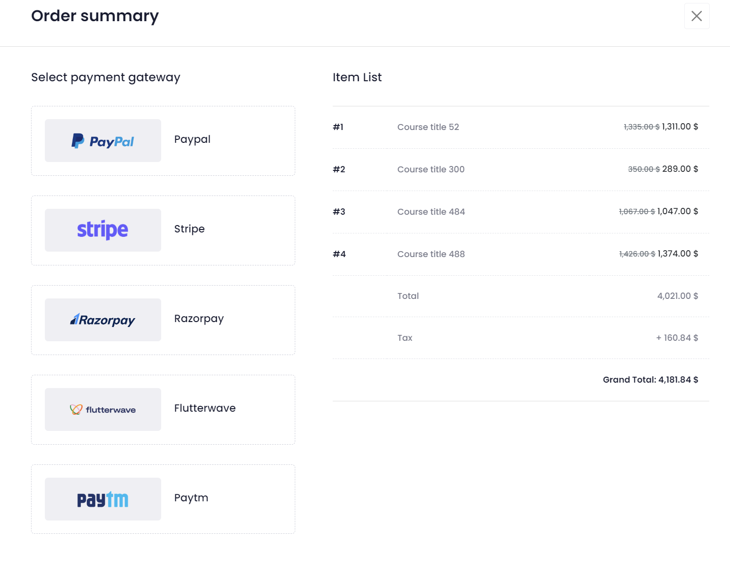 Choose the preferred payment gateway, and finish the payment process. Your course purchase process will be completed.