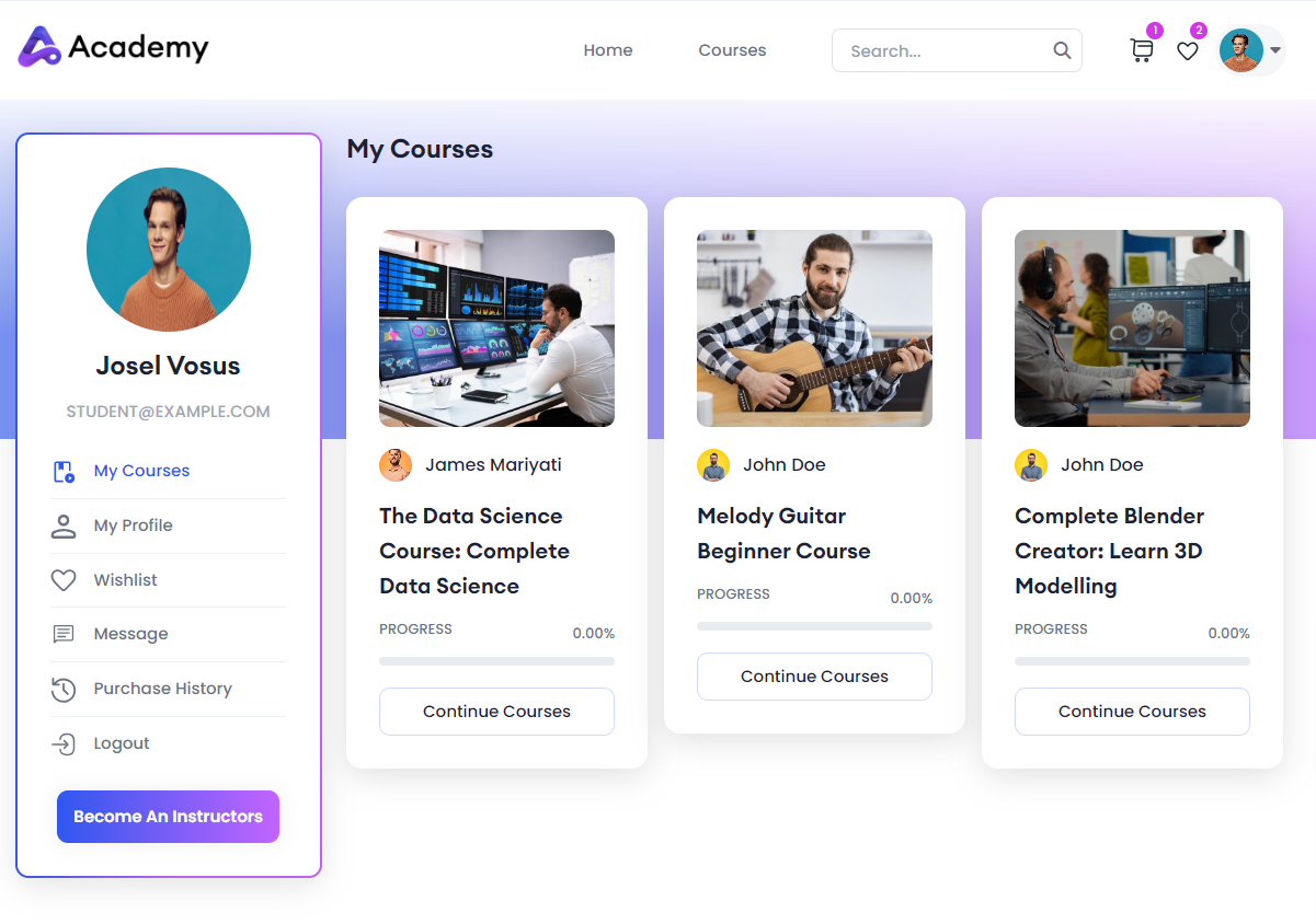 Login to Academy LMS Laravel using your credentials as a Student.