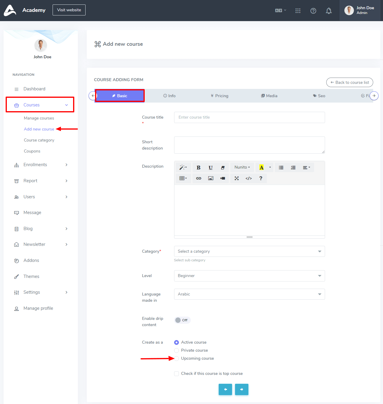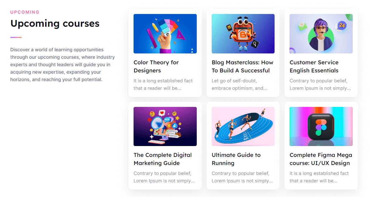 You can publish upcoming courses in Academy LMS as a site admin. These upcoming courses will be visible on your application's home page.