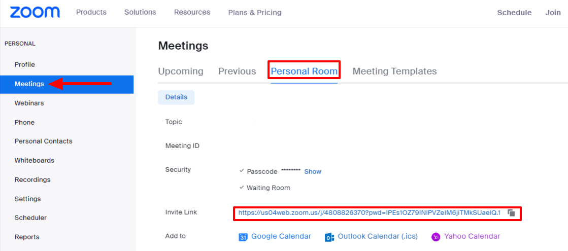 - Click on the "Upcoming" button if you want to schedule your meeting.