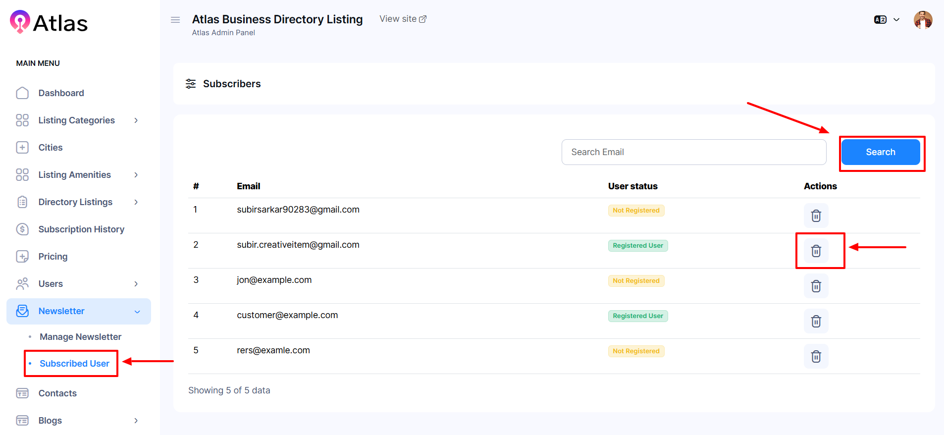 - From the left sub-menu, click Subscribed Users to open a new window.