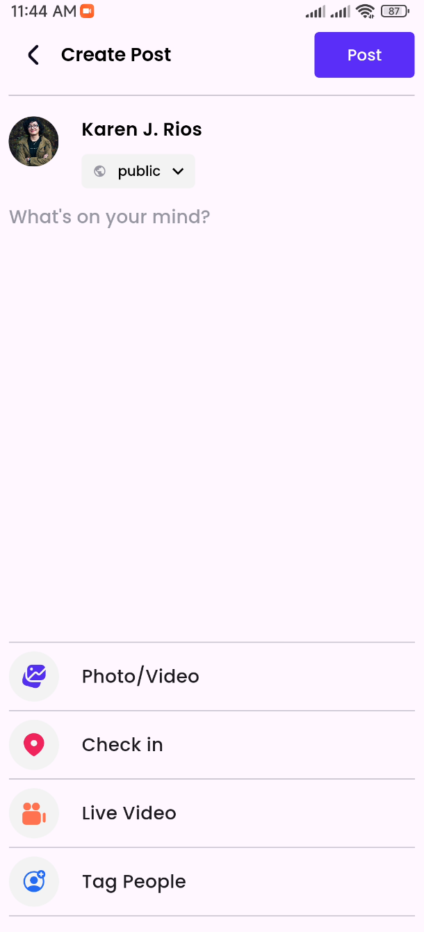 5. Choose the privacy of the post (Users can make their posts public or only friends)
