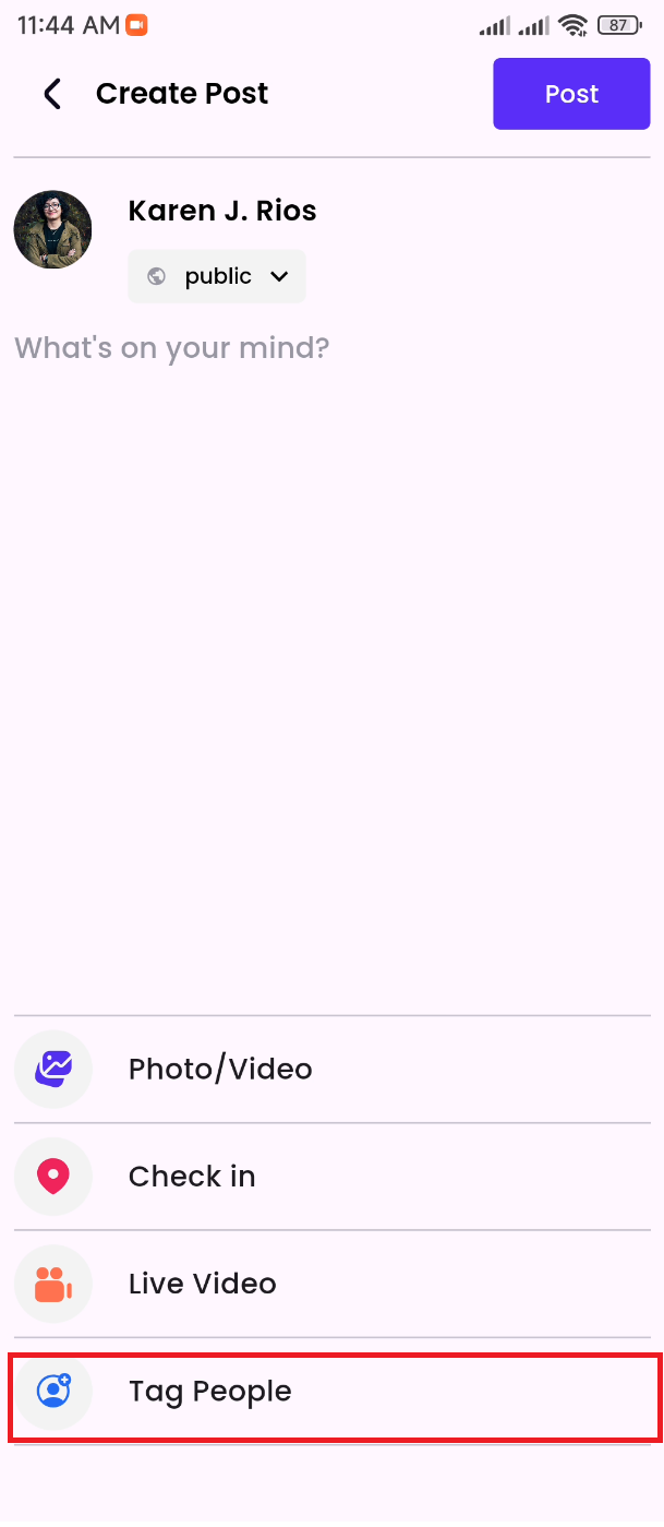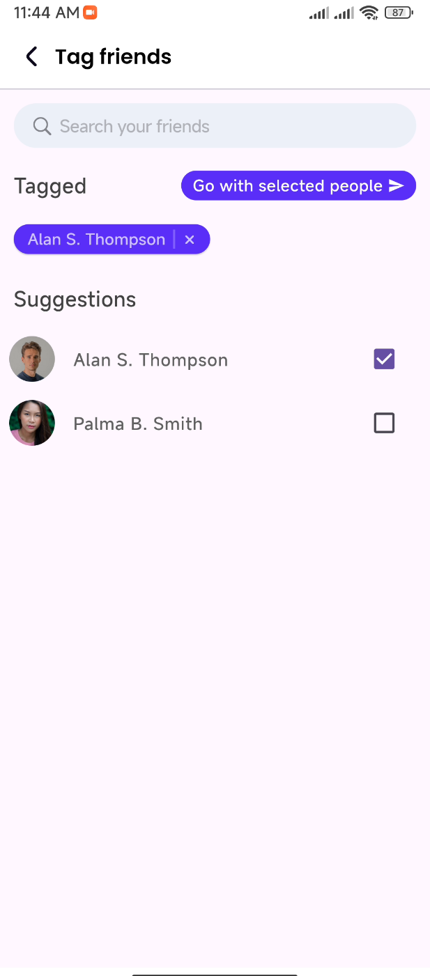 1. Select users that you want to tag. (User can choose multiple users to tag in a post)
