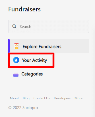 You can manage Fundraise anytime from the "Your Activity" section. The below steps can be followed for managing Fundraiser: