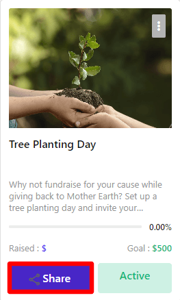 You can also share your fundraiser anytime by clicking on the "Share" button from your created fund list.