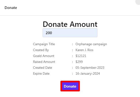 Provide the amount and click on the "Donate" button