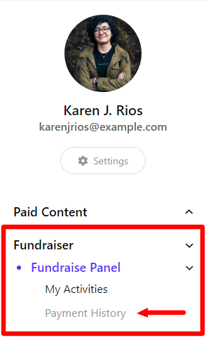 Select the "Payment History" option from the "Fundraiser Panel"