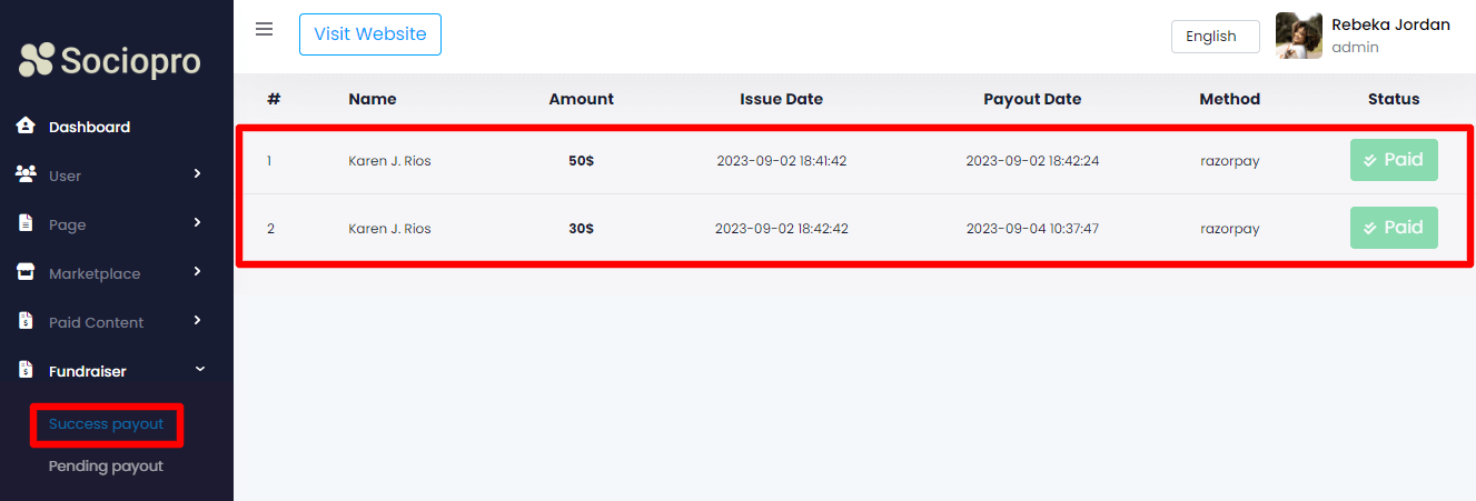 Admin has access to manage Fundraiser Addon. You can manage payout requests from the admin panel. The below steps can be followed for this:
