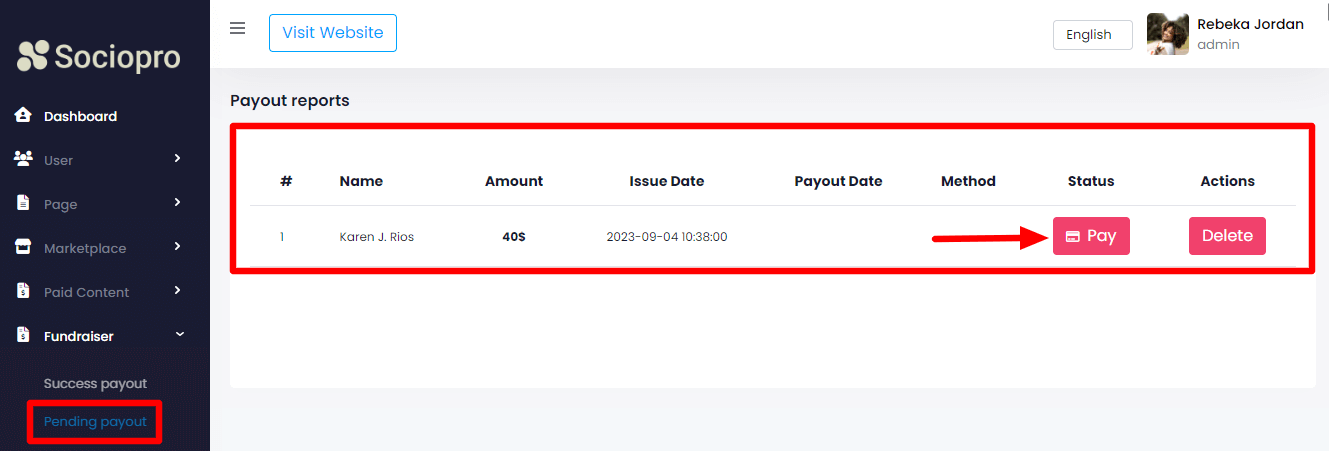 Pending Payout: Here in this section, you can view & manage the pending payment requests made by the users. You can pay them by clicking on the "Pay" button from the list.
