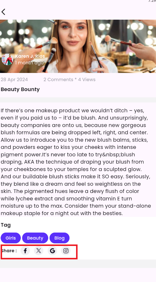 Users can share blogs with other platforms within a few clicks. They can share any blog on Facebook, Twitter, Linkedin, and Telegram. For this, they can follow the steps Below: