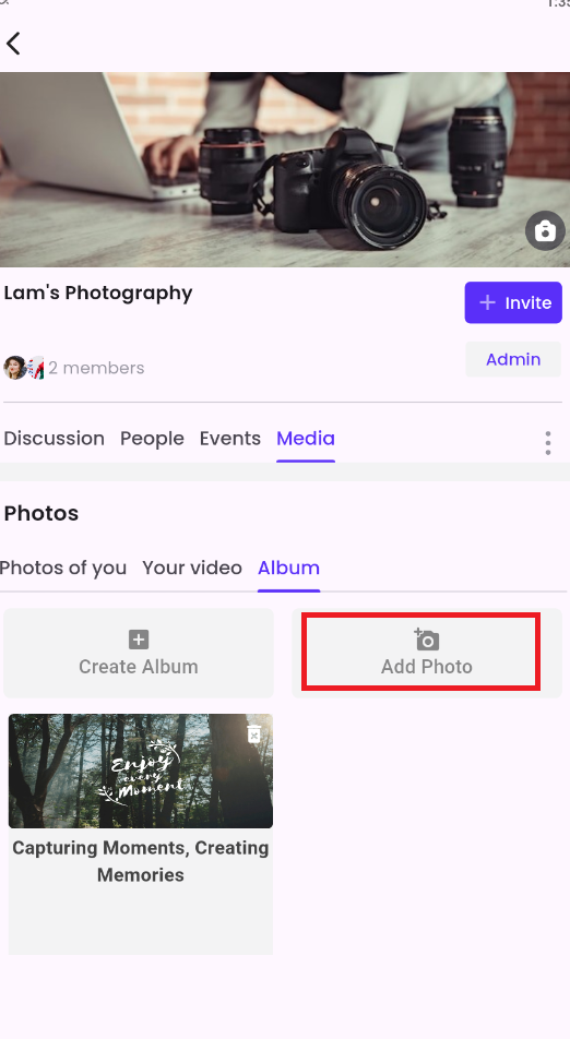 The group admin can also add their group images from their devices to the albums. For this, they can follow the steps below: