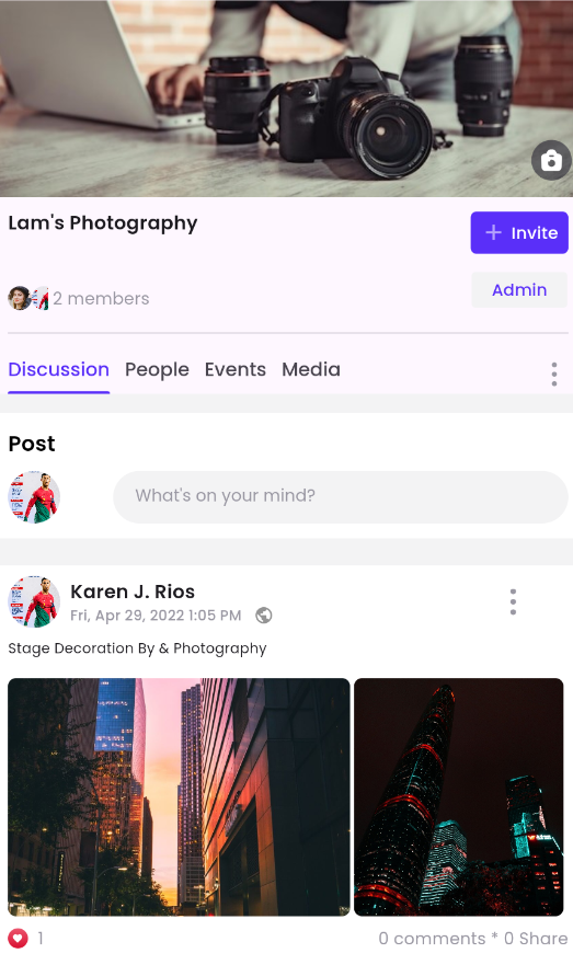 In Sociopro, a group serves as a platform for discussions among people with common interests, allowing them to share opinions, ideas, thoughts, and questions. Groups enable users to connect based on shared objects, interests, or activities. Users can join existing groups or invite friends to join groups they find relevant.