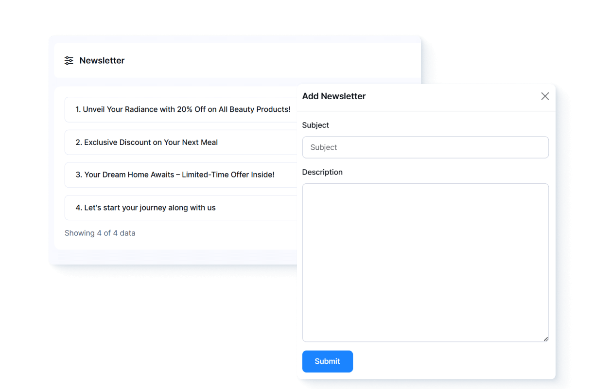 Allows businesses to share updates, promotions, and announcements through email newsletters to keep users informed and connected.