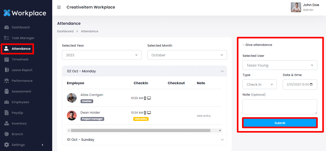 The below steps might be helpful for managing attendance in the admin panel: