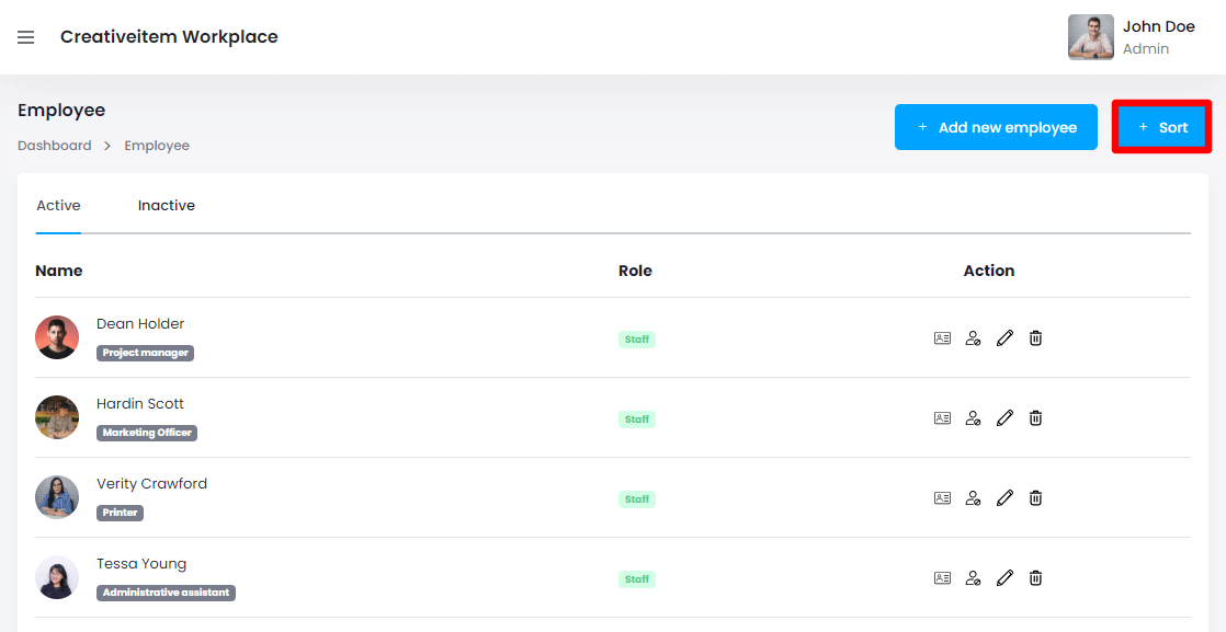 You can also rearrange the list of your employees by clicking on the "Short" button from the right side.