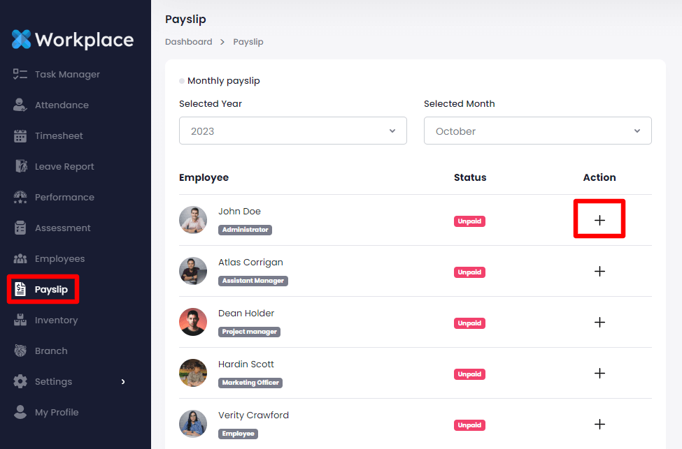 The below steps might be helpful for managing payslips in the admin panel: