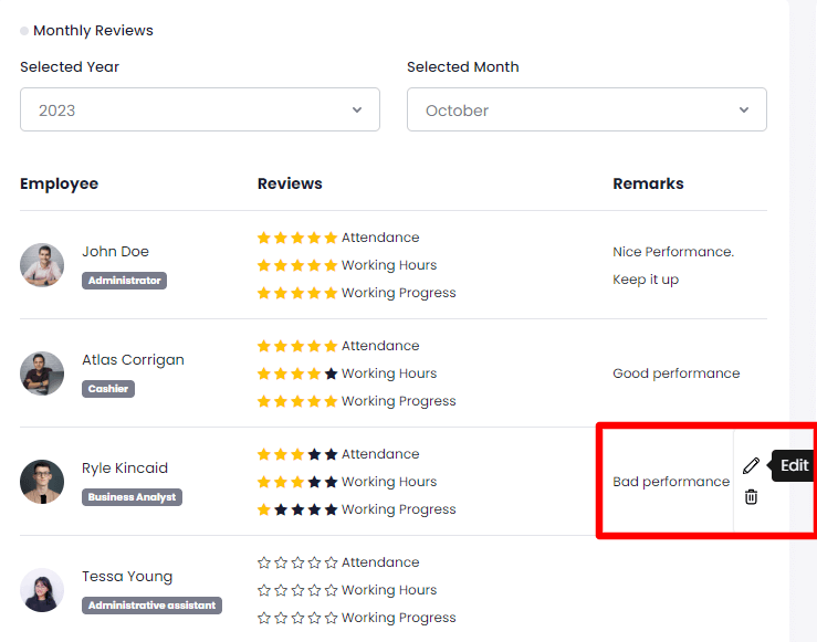 Select the star you want to give and write down a remark then click on the "Submit" button.