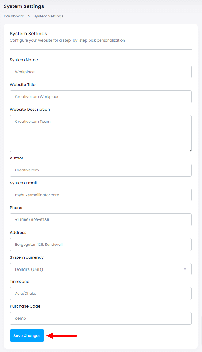 As an admin, you can access the system settings option. Here you can update the basic info about your application. The below steps might be helpful for this: