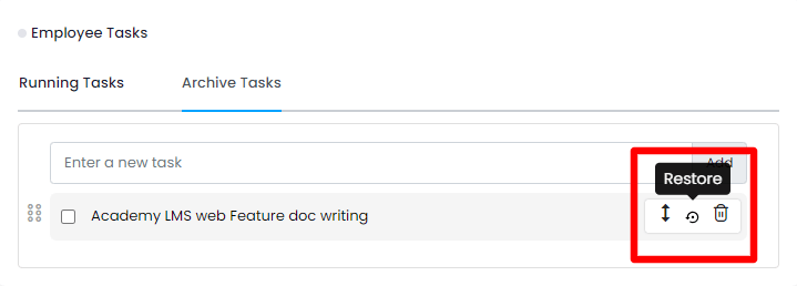 The tasks your users mark as archived are listed in the "Archive Tasks" section. They can restore the archive task anytime by tapping on the restore icon from the task list.