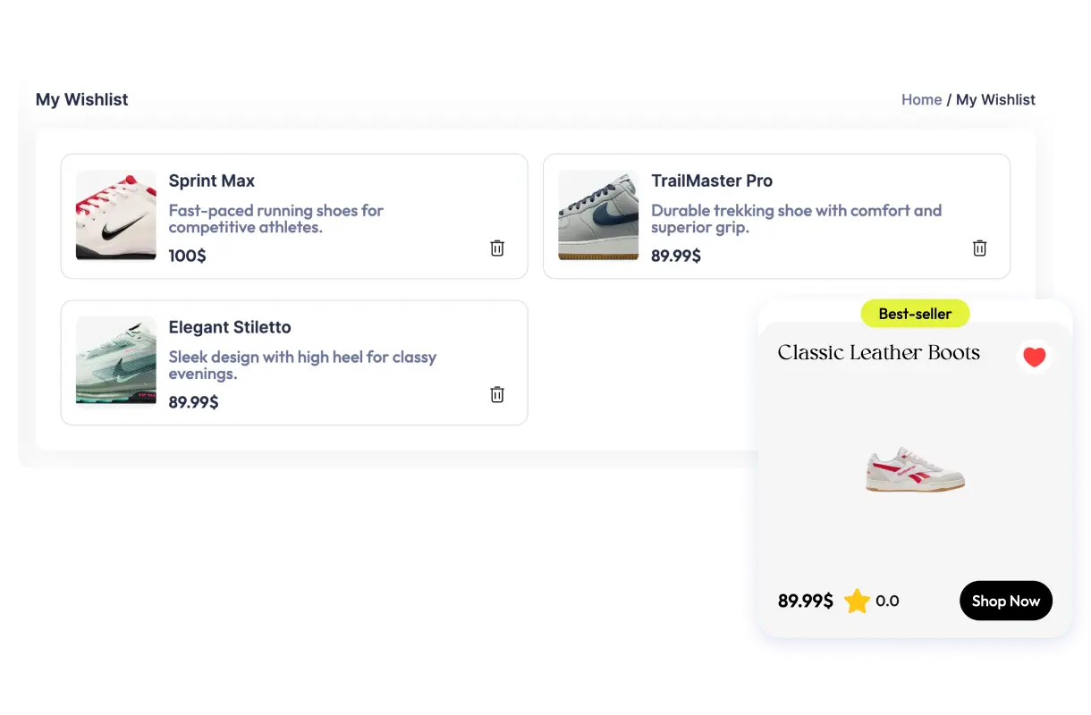 Increase user satisfaction by letting shoppers create personalized wishlists and track products they love.