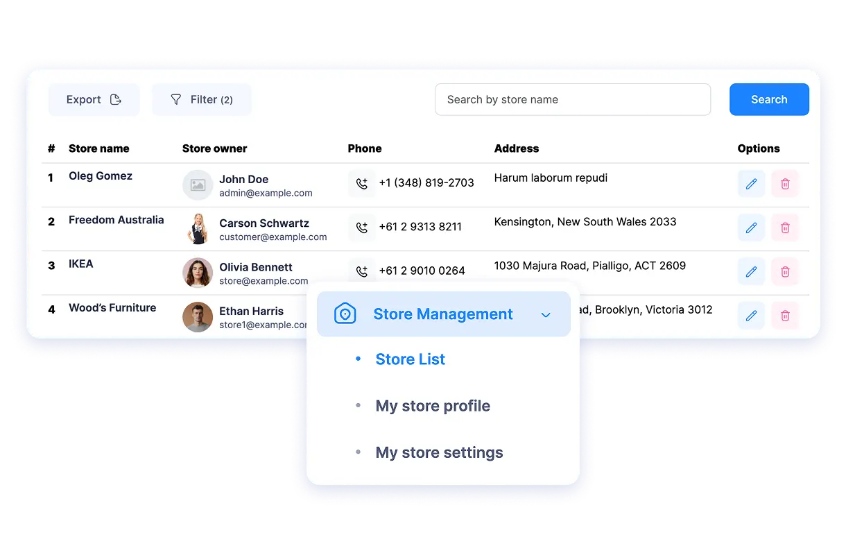 Store Management gives you full control over your e-commerce business, manages products, orders, inventory, and customers from one easy-to-use dashboard.