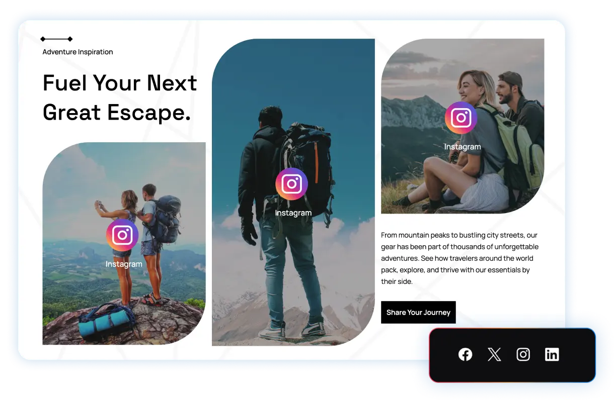 Built-in social media connections for better engagement. Direct social media connections strengthen brand engagement.