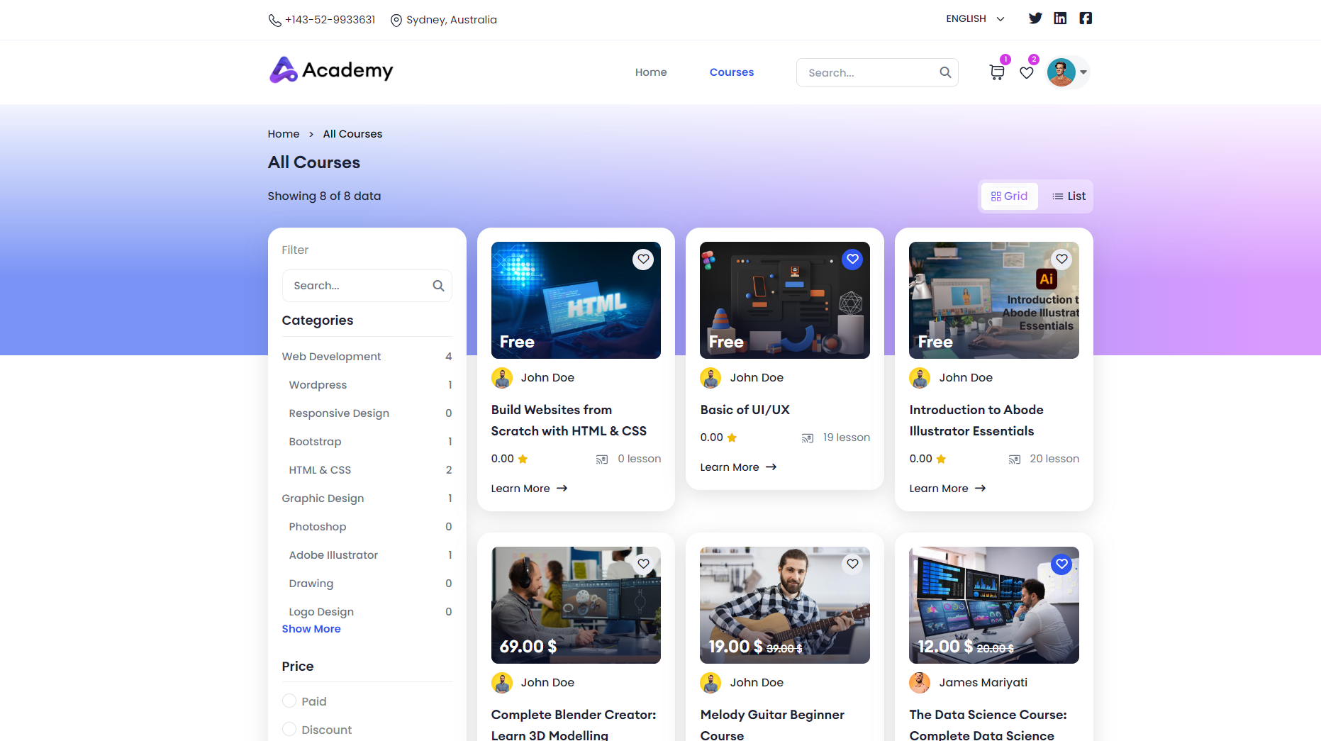 After you purchase courses, you can view all the courses inside the My Courses.
