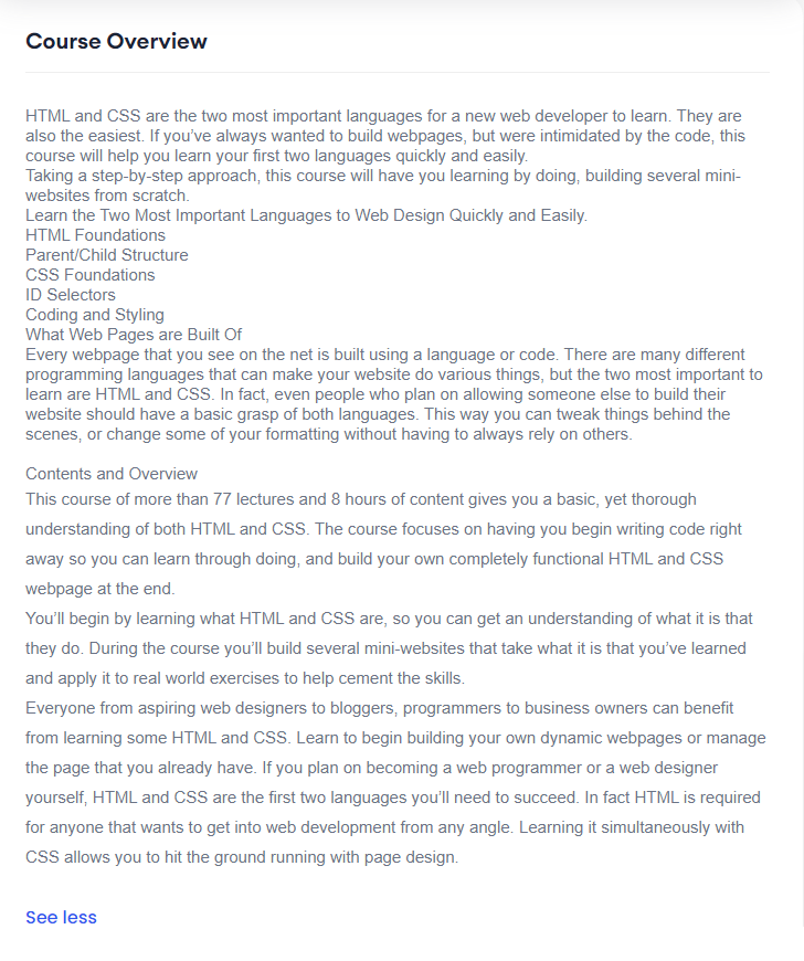 You can view the Overview, Course Content, Details, Instructor and Reviews by clicking on the respective buttons.