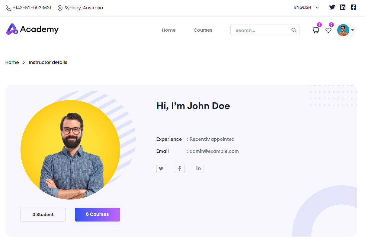 After clicking on a course, you can view the course details in the next page such as: Course title, instructor name, number of enrolled students, total taught hours in the course, and the language of the course.