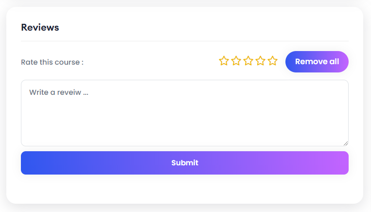 If you click on Reviews, you can provide a review, and also rate the course based on 5 stars. Click on Submit after providing the review. You can also remove the review if you want by clicking on the Remove All button.