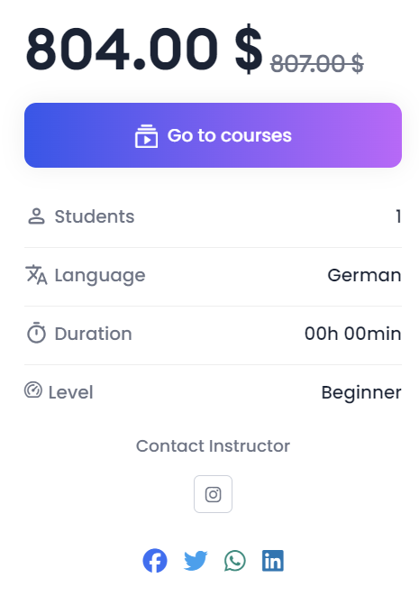 If you want to purchase the course, click on the Buy Course button. If the course is purchased already, it will show a Go To courses button instead, which will redirect you to the My Courses page.