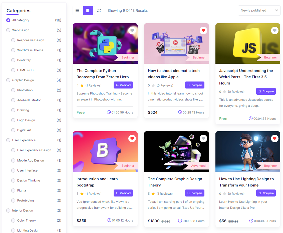 A student can browse a course from the welcome page. Also, they can filter the course based on: