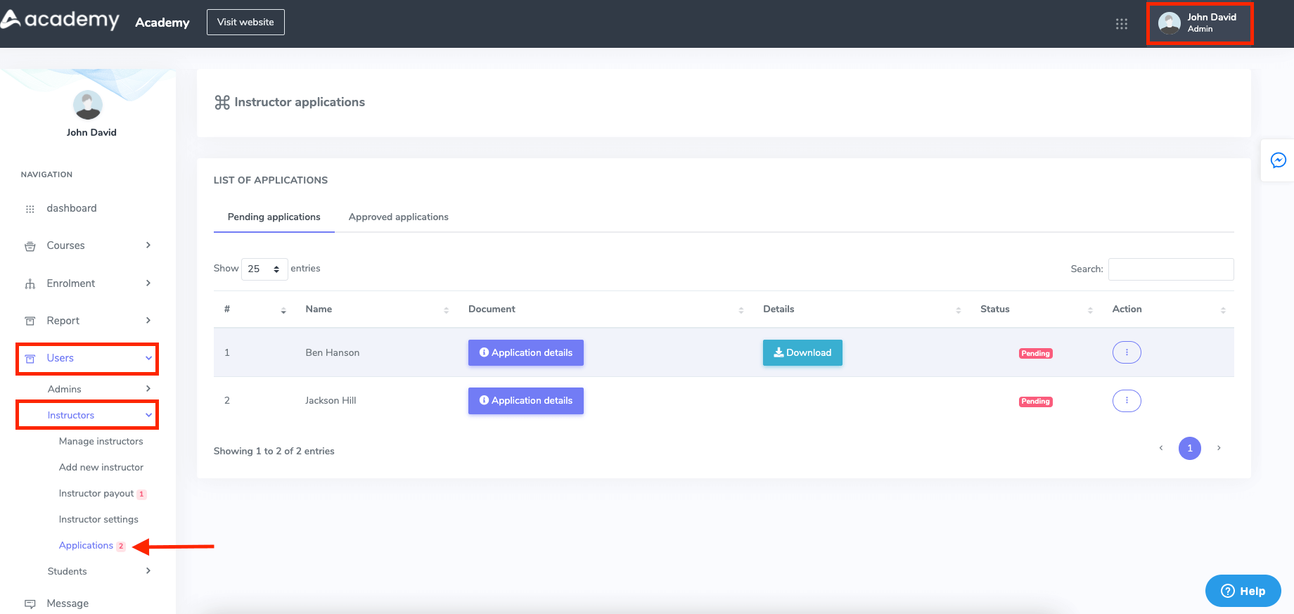 You can approve or reject the request and add an instructor to your application within a few clicks.