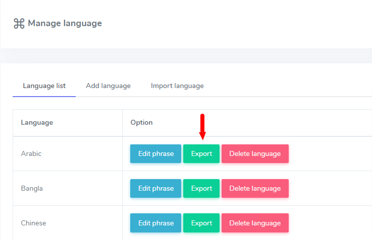 You can also export your language as a JSON file from Academy LMS. For this, you can follow the steps below: