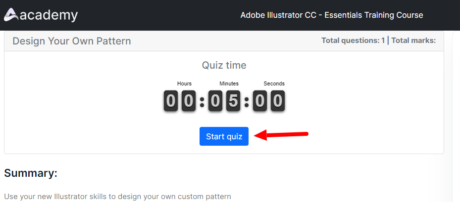 • Click on the "Start quiz" button to start the quiz. (The time will start counting by selecting the button)