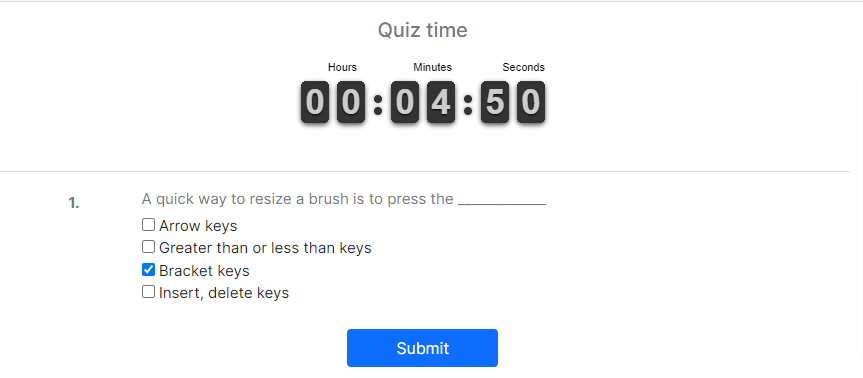 The course students can solve the quiz from their accounts. Your students have to complete the quizzes in the limited time that the course instructor has set. The answers will be submitted automatically after completing the selected time. They can also submit their answers before completing the time. But they can not answer the question again if they submit the answers. The students can not pause the quiz time in any way.