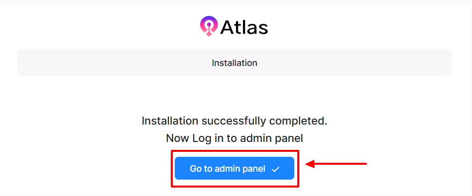 Now click the "Go to Admin Panel" button to complete the installation. You will be redirected to the admin panel login page, where you can log in using the administrator email and password you provided earlier.