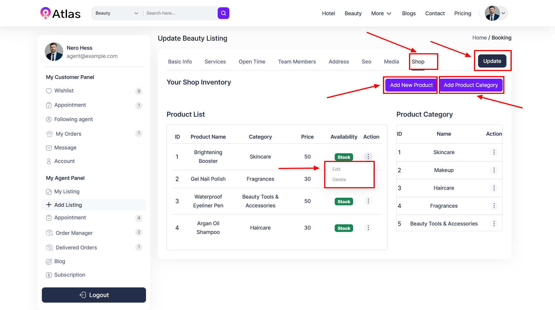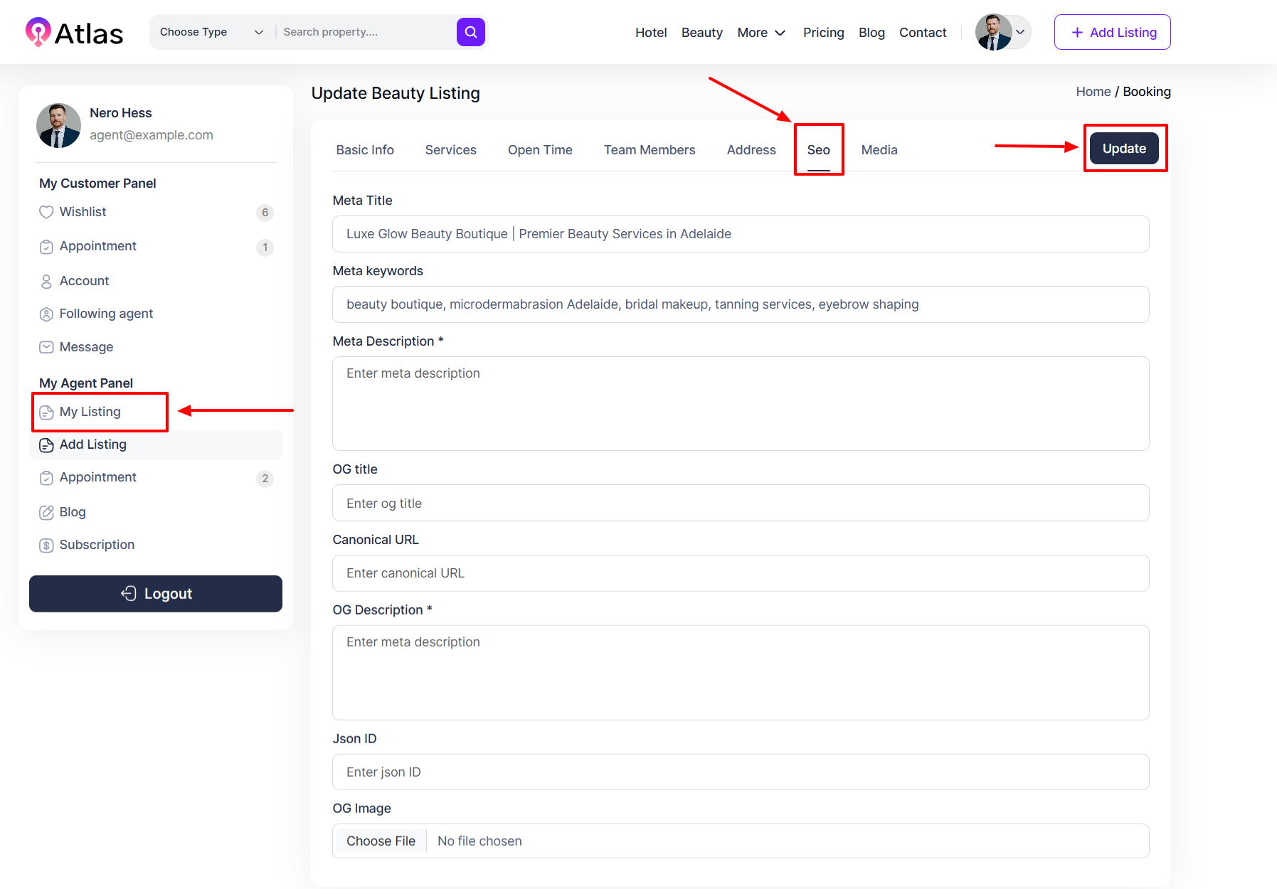 In Atlas Laravel, My Listing helps businesses manage their property or service listings effortlessly. Add, edit, or update details to keep them fresh. This feature boosts visibility, attracts customers, and supports business growth effectively.