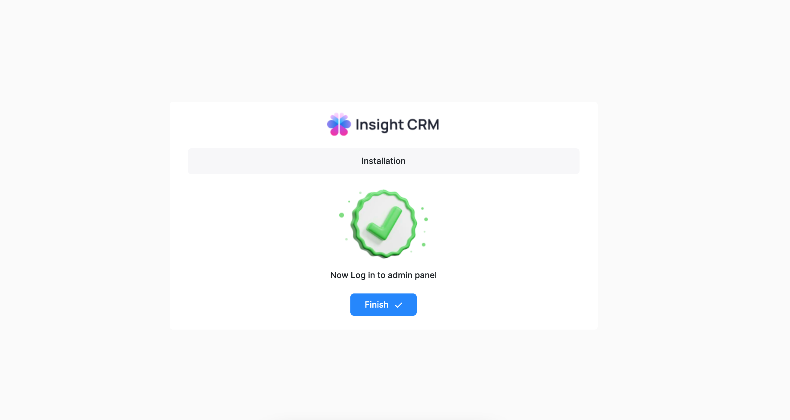 Now click the "Finish" button to complete the installation. You will be redirected to the admin panel login page, where you can log in using the administrator email and password you provided earlier.