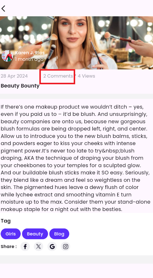 Users can comment or react to a post if they want. To comment or react to a blog, users can follow the steps below: