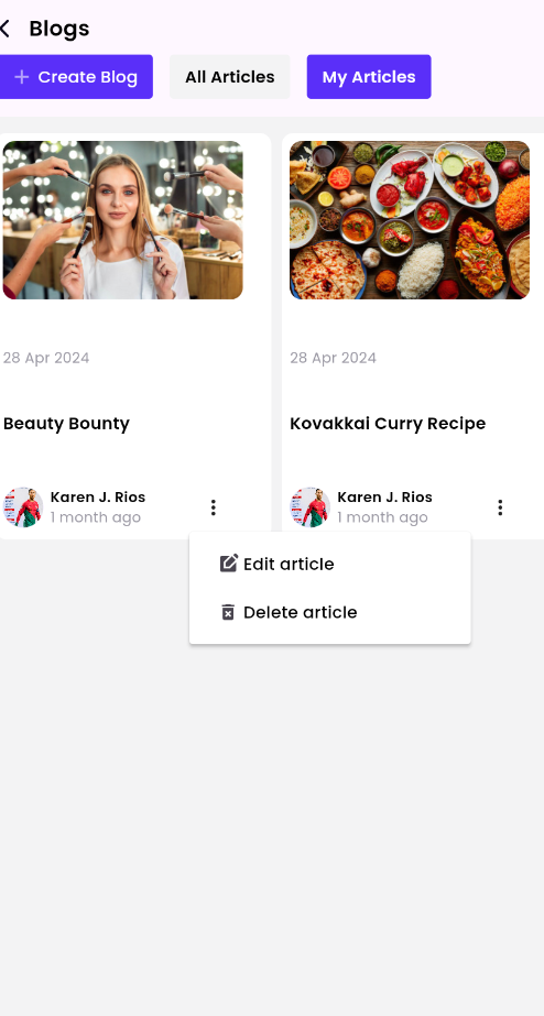 Users can see all their previously published blogs on a platform in Sociopro. They can also update or remove their blogs from their account within a few clicks.