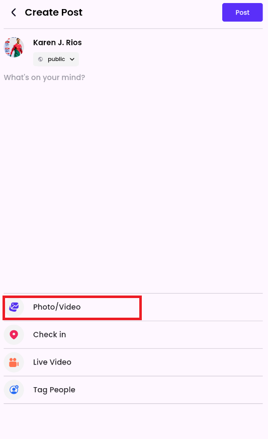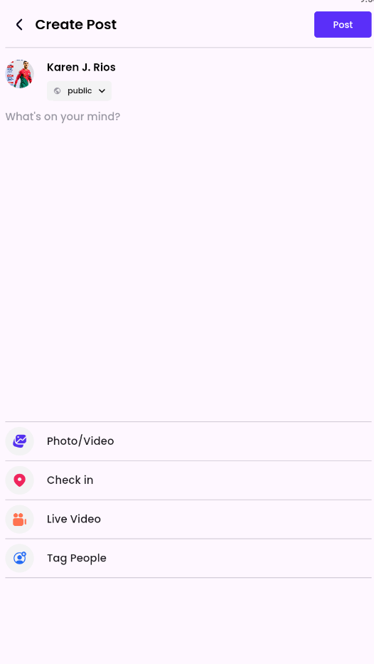 Choose the privacy of the post (Users can make their posts public, friends, or only me)