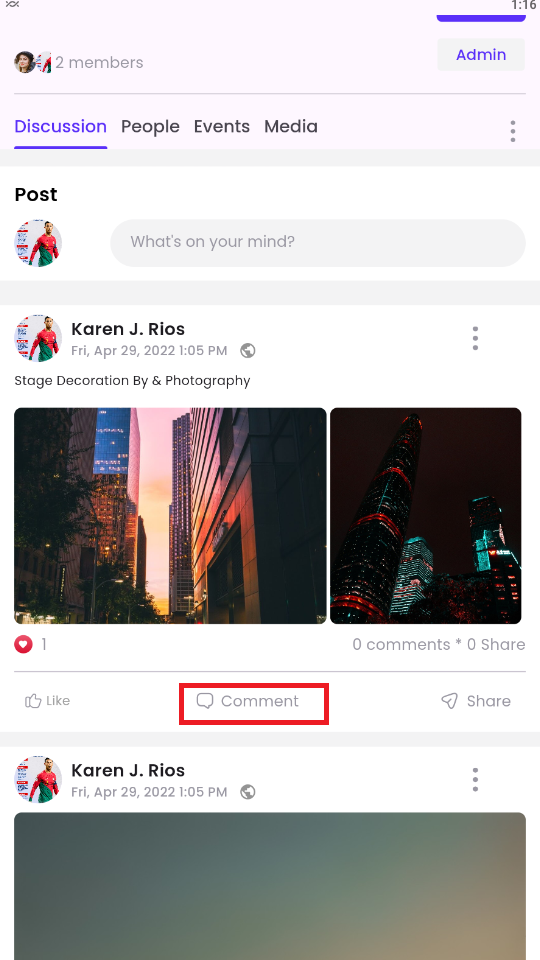 In Sociopro, users can comment on posts within the groups they have joined. They can also add various reactions to posts and comments, including happy, sad, wow, and angry emojis. Additionally, users can reply to other users' comments in the groups to continue and enhance the discussion.