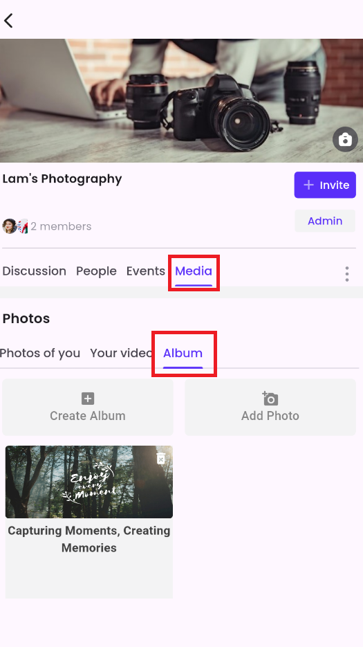 The group admin can also add their group images from their devices to the albums. For this, they can follow the steps below: