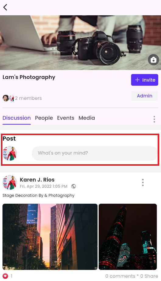 Group members can start live videos in a group on Sociopro. Only group members can see the live video if any group member starts it. Users can share their experiences, news, or events in real-time with their group members through the live video feature.